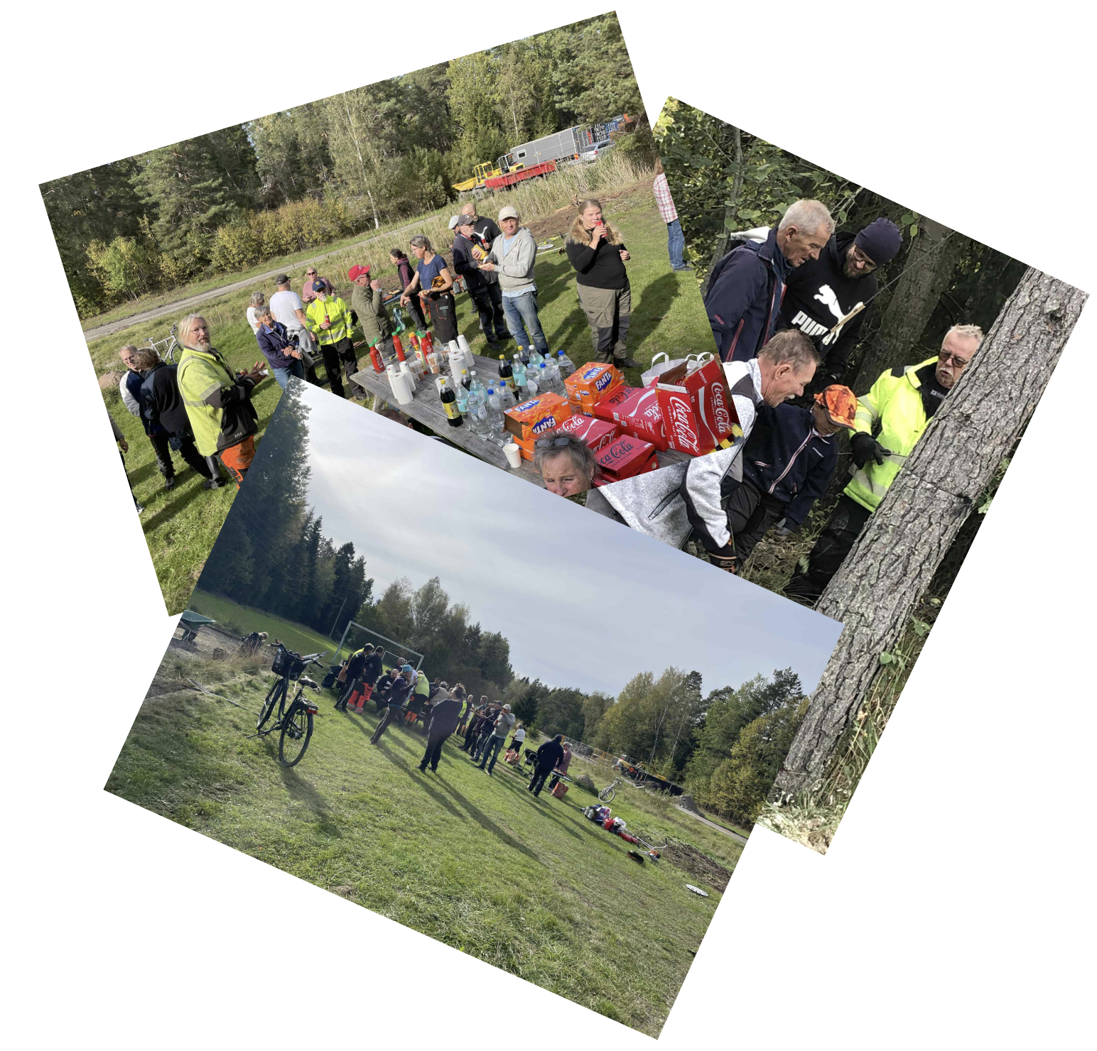 Klockan 1000 samlades ett ca 50-tal hjältar, stora som små, för kort genomgång om arbetsområden och gruppindelning. Snart var det full aktivitet i alla arbetsområdena och det hanns med så mycket på dessa få timmar! Flishögarna, både ordinarie och den tillfälliga, är åter igen väl fyllda inför vinterflisningen.